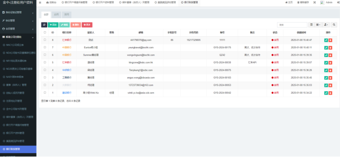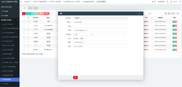 5、银行联系管理