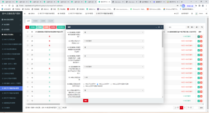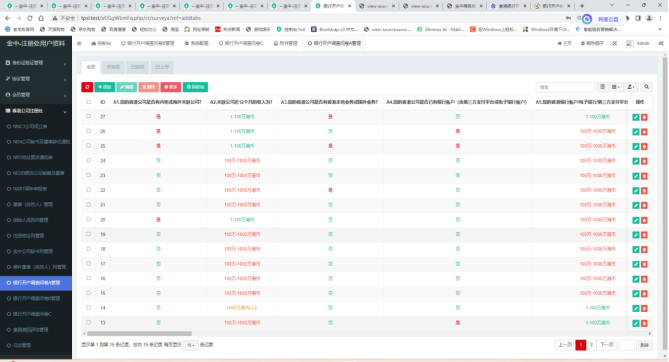2、可对银行开户评测进行查询、编辑、删除操作