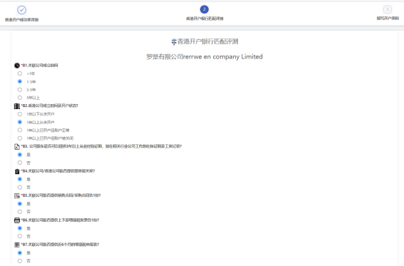 1、香港注册处-》银行开户评测调查管理